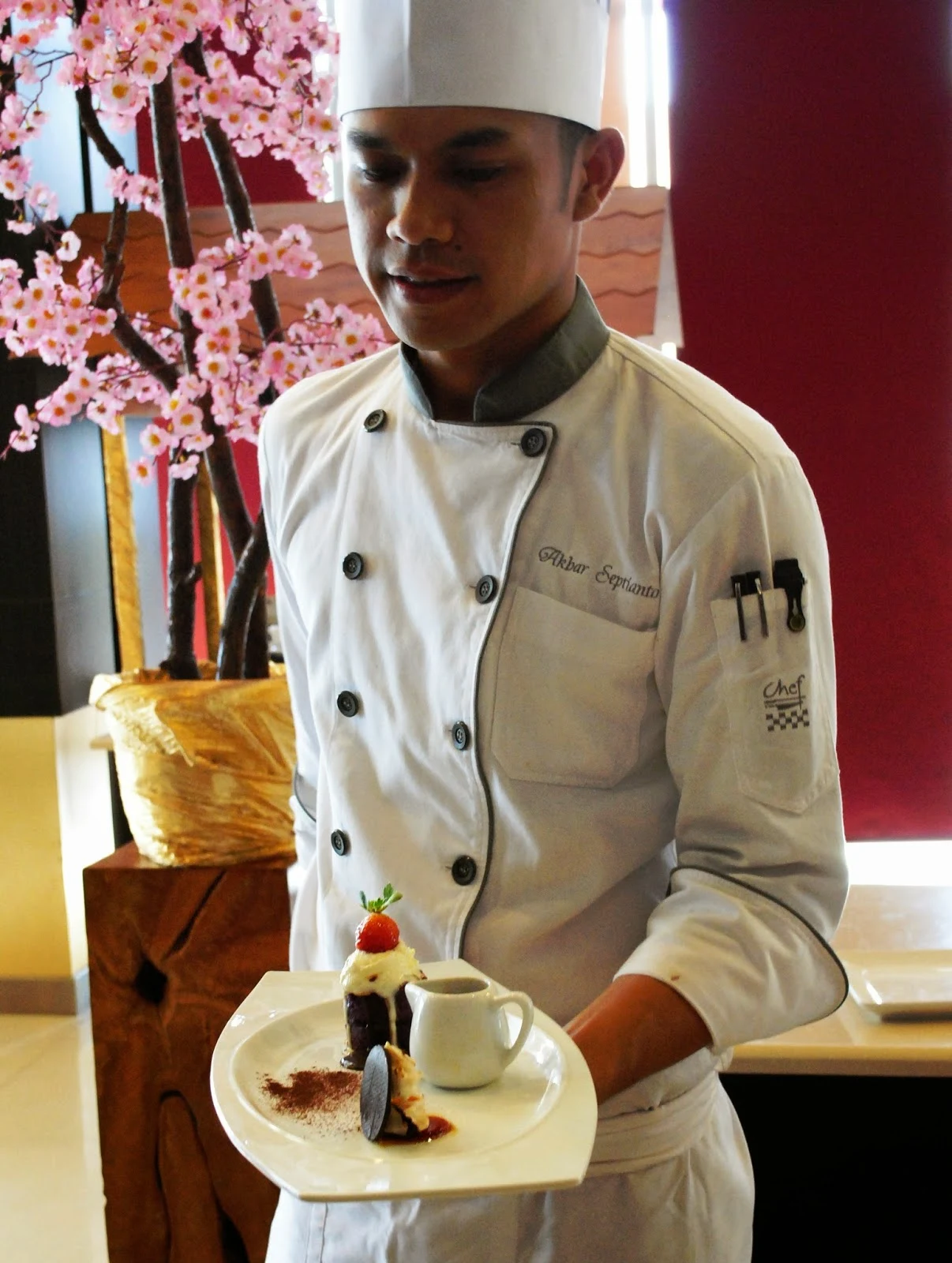 Lidah para tamu masih akan dimanjakan dengen sajian istimewa dari Executive Sous Chef Akbar Septianto yang sudah menyiapkan beragam makanan seperti Seared Prawn with Seasonal Garden Greens Salad, Cispy Parmesan Cheese and lebanese salsa, Clear Chicken broth with chicken wrapped on Pokcoy, Grilled Chicken breast served with Basil Mashed Potato Tagliatelle vegetable and mushroom sauce, OR, Pan Seared Salmon served with Turnip Potatoes Sauteed vegetable and lemongrass beurrebla.