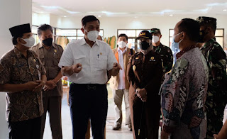 KabarMagelang.com__Menteri Koordinator Kemaritiman dan Investasi (Menko Marves) Luhut Binsar Panjaitan berkesempatan mengunjungi Hotel Borobudur Indah Kota Magelang, yang menjadi lokasi isolasi mandiri terpusat (isoter) pasien Covid-19 tanpa gejala (OTG).